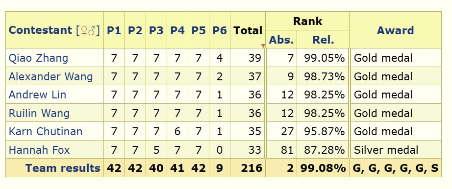 This year, the PRC topped the USA team. But, if you read the *names* of the contestants in the Team USA, it looks like this