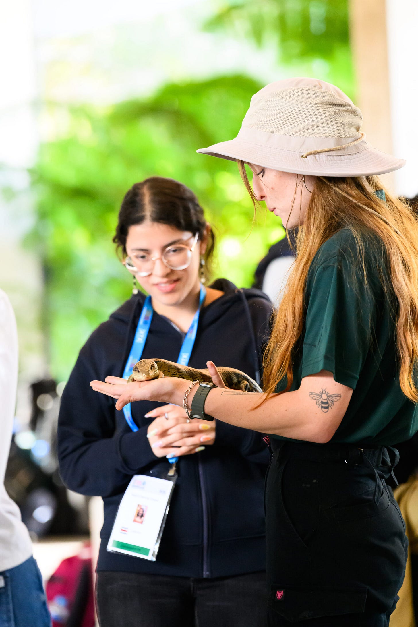 [Yes, that is a real lizard from the Australia Zoo - Home of the Crocodile Hunter - Steven Irwin. An IMO contestant is riveted by it.]