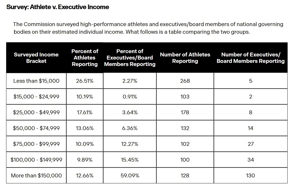Executive highlight: A quarter of top level athletes have below poverty income.