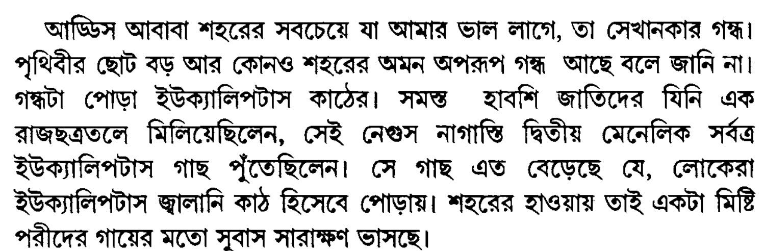 Executive verification: All of this is true about Addis Ababa. I would not have known about the smell until I visited the city half a century after Premendra Mitra wrote about it. I happened to be in Addis Ababa in the winter of 2003. I did not find burning eucalyptus smell pleasant - perhaps tainted by my own bushfire experience in Australia.